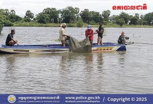 កម្លាំងនគរបាលខេត្តកំពង់ឆ្នាំង ចុះបង្ក្រាបបទល្មើសនេសាទនៅស្រុកជលគិរី..