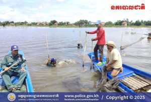កំពង់ឆ្នាំង ៖ នៅរសៀលថ្ងៃអង្គារ ១០កើត ខែភទ្របទ ឆ្នាំម្សាញ់ សប្តស័ក ពុទ្ធសករាជ២៥៦៩ ត្រូវនឹងថ្ងៃទី២ ខែកញ្ញា ឆ្នាំ២០២៥ ដោយមាន​ការចង្អុល​ណែនាំ​ពីសំណាក់ ឯកឧត្តម នាយឧត្តមសេនីយ៍ ស ថេត អគ្គស្នងការនគរបាលជាតិ និងការចង្អុលដឹកនាំ​តម្រង់ទិសដោយផ្ទាល់ របស់​លោកឧត្តមសេនីយ៍ទោ តេង ច័ន្ទណាត ស្នងការ នៃស្នងការដ្ឋាននគរបាលខេត្តកំពង់ឆ្នាំង កម្លាំងប៉ុស្ដិ៍នគរបាលរដ្ឋបាលកោះថ្កូវ សហការជាមួយគណបញ្ជាការឯកភាពឃុំកោះថ្កូវ កងទ័ពជើងទឹក ប្រជាការពារ និងសហគមន៍នេសាទ ដឹកនាំដោយលោក ប៊ិន សុផាត មេឃុំកោះថ្កូវ និងលោកវរសេនីយ៍ត្រី សូត្រ សុផេត នាយប៉ុស្ដិ៍នគរបាលរដ្ឋបាលកោះថ្កូវ ដែលមមានកម្លាំងសរុប ២៤នាក់ ចុះបង្ក្រាបបទល្មើសនេសាទ ស្ថិតក្នុងភូមិសាស្ត្រ ឃុំកោះថ្កូវ ស្រុកជលគិរី ខេត្តកំពង់ឆ្នាំង និងបានរុះរើរបាំងស្បៃមុង ១៤កន្លែង មានប្រវែង ១២១៥ម៉ែត្រ លូស្បៃមុង ១៤មាត់ និងបង្គោល ៩៥០ដើម ព្រមទាំងចាក់លែងកូនត្រីចម្រុះចូលក្នុងបឹងវិញចំនួន ៨០០គីឡូក្រាម ហើយសម្ភារៈដែលបានរុះរើត្រូវបានកាប់ឆ្កា និងដុតបំផ្លាញចោលនៅនឹងកន្លែង៕