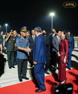 សម្តេចមហាបវរធិបតី ហ៊ុន ម៉ាណែត និងលោកជំទាវបណ្ឌិត ពេជ ចន្ទមុន្នី ហ៊ុនម៉ាណែត បានដឹកនាំគណៈប្រតិភូរាជរដ្ឋាភិបាលកម្ពុជាមាតុភូមិនិវត្តន៍មកដល់រាជធានីភ្នំពេញដោយសុវត្ថិភាពដោយមានការទទួលស្វាគមន៍ដោយឯកឧត្តមលោកជំទាវគណៈរដ្ឋមន្ត្រីគ្រប់ស្ថាប័ន