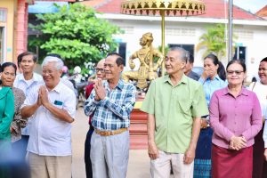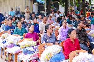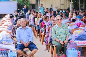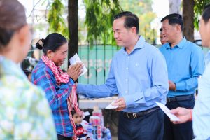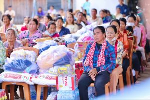 បន្ទាប់ពីសំណេះសំណាលសាកសួរសុខទុក្ខរួចលោកក៏បាននាំយកអំណោយជំនួយឧបត្ថម្ភពីសម្ដេច ធិបតីហ៊ុនម៉ាណែត នាយករដ្ឋមន្ត្រីព្រះរាជាណាចក្រកម្ពុជា និងសប្បុរសជនក្នុងខេត្តកំពង់ចាម ចែកកំណោយជូនប្រជាពលរដ្ឋភៀសសឹក និងក្រុមគ្រួសារវរកងទ័ពចំនួន 64គ្រួសារ ភៀសខ្លួនពីតំបន់សៀមឈ្លានពាន កំពុងស្នាក់នៅក្នុងក្រុងកំពង់ចាម